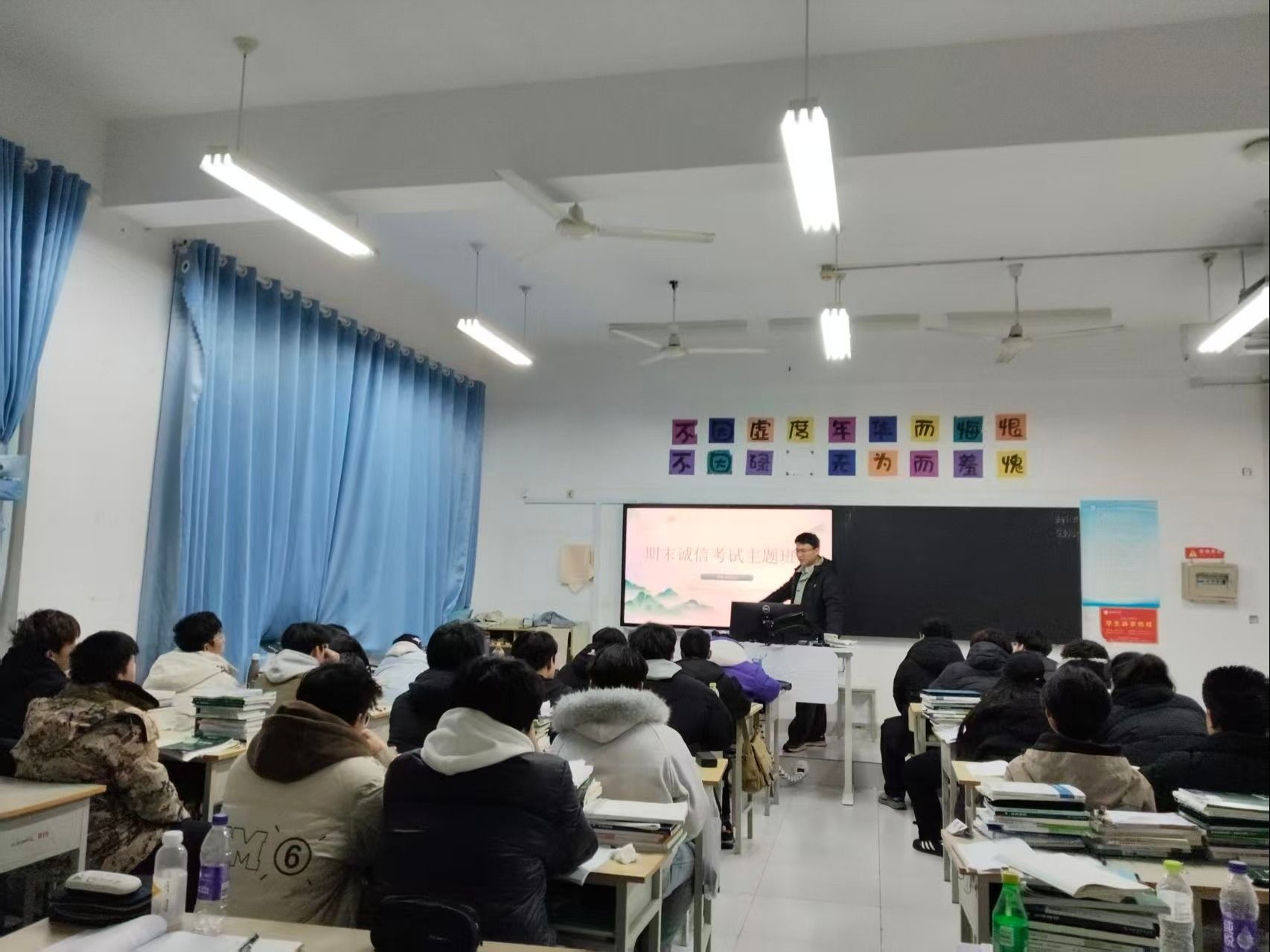 随着期末考试临近,为进一步加强学风建设,营造风清气正、公平公正的考试环境,机电工程学院于1月7日组织各班陆续开展“诚信考试”主题班会。