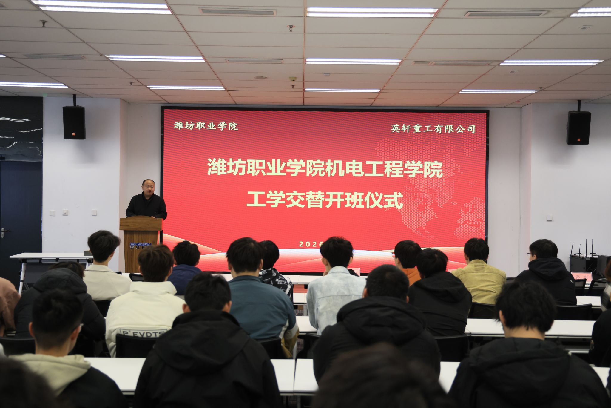 动员会上,英轩重工人力资源部部长邱红致欢迎辞,对学院师生的到来表示热烈欢迎,并表达了企业对岗位体验项目的重视与支持。装载机事业部制造部部长王贤兵就实习期间的工作任务、安全规范等事宜进行了详细部署。